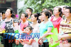 | 小升初考点前站满焦急等待的家长。骆昌威摄 |