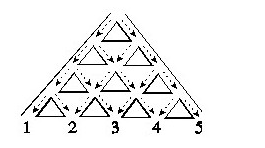 1、选择题:如图所示为一个污水净化塔内部,污水从上方入口进入后流经形如等腰直角三角形的净化材料表面,流向如图中箭头所示,每一次水流流经三角形两腰的机会相同,经过四层净化后流入底部的5个出口中的一个。下列判断:(1)5个出口的出水量相同;(2)2号出口的出水量与4号出口的出水量相同;(3)1,2,3号出水口的出水量之比约为1:4:6;(4)若净化材料损耗的速度与流经其表面水的数量成正比,则更换最慢的一个三角形材料使用的时间约为更换最快的一个三角形材料使用时间的8倍,其中正确的判断有( ) A.1个 B.2个 C.3个 D.4个