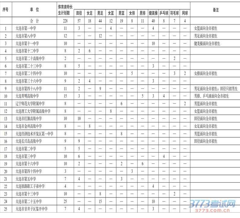 [图文]2015年大连市内及跨区域招生高中体育类特长生招生计划