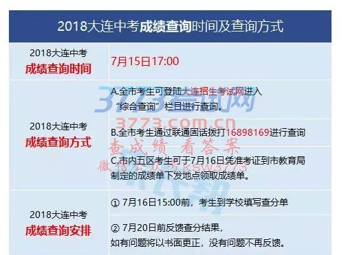 现将大连教育局公布的2018中考考后成绩发放时间、查分时间、查分方式、录取查询等相关事宜公布如下: