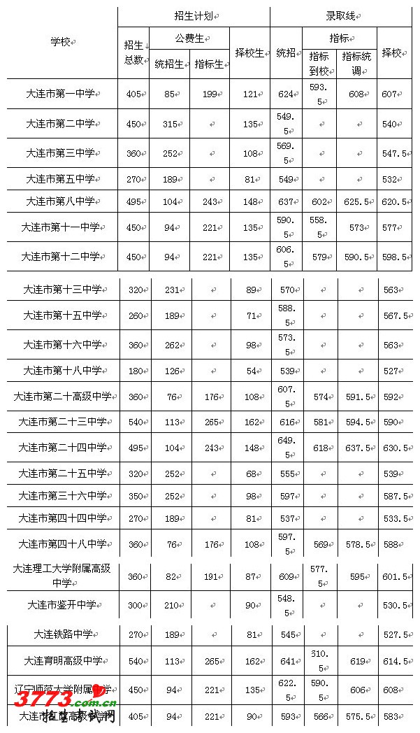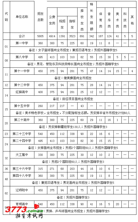 大连市内省重点及省示范性高中招生总数为5805人(单位:人)