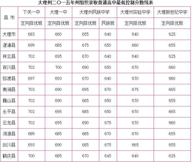 [图文]2015大理州民族中学大理州实验中学录取分数线