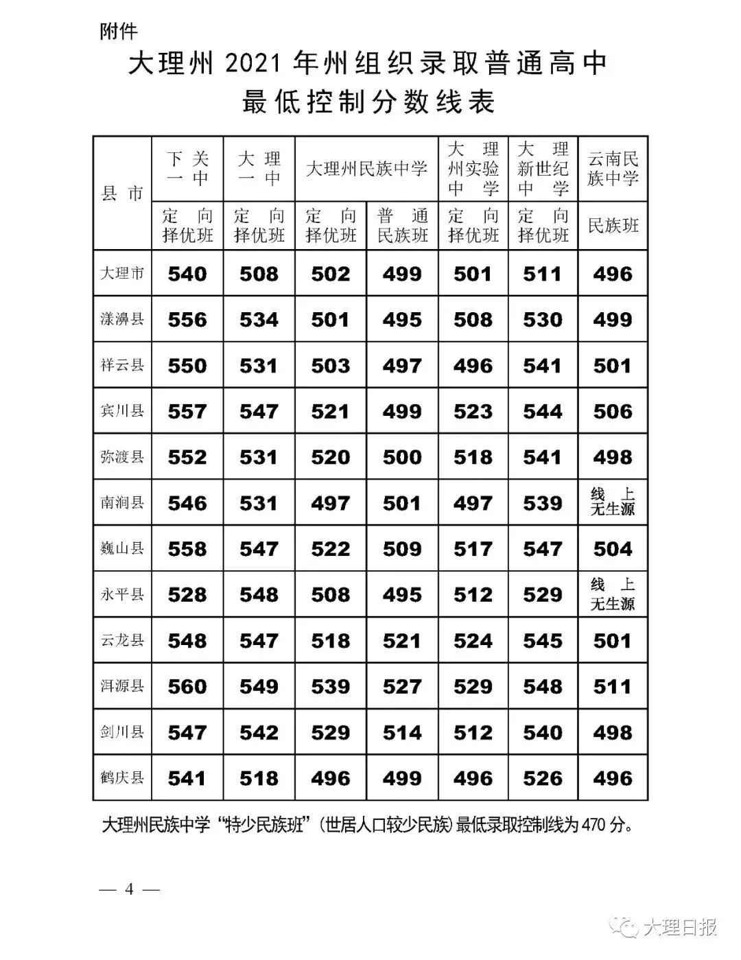 从大理州教育体育局获悉,今年,州组织录取的普通高中最低录取控制线为495分,其中州民中“特少民族班”最低录取控制线为470分。