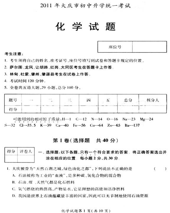 3、萨尔图  龙凤  让胡路  红岗  大同区 考生在答题卡上作答
