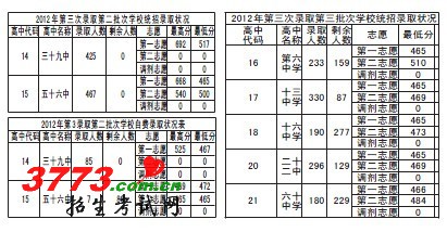 记者了解到,第三批次填报志愿为总分在资格分数线465分(含资格线)以上未被录取的考生,填报志愿范围为第一类招生学校未完成的统招和自费计划,第二类招生学校未完成的统招计划,第二类招生学校自费计划,第三类招生学校统招计划。三类招生学校有六中、十三中、十六中、二十二中和六十中。