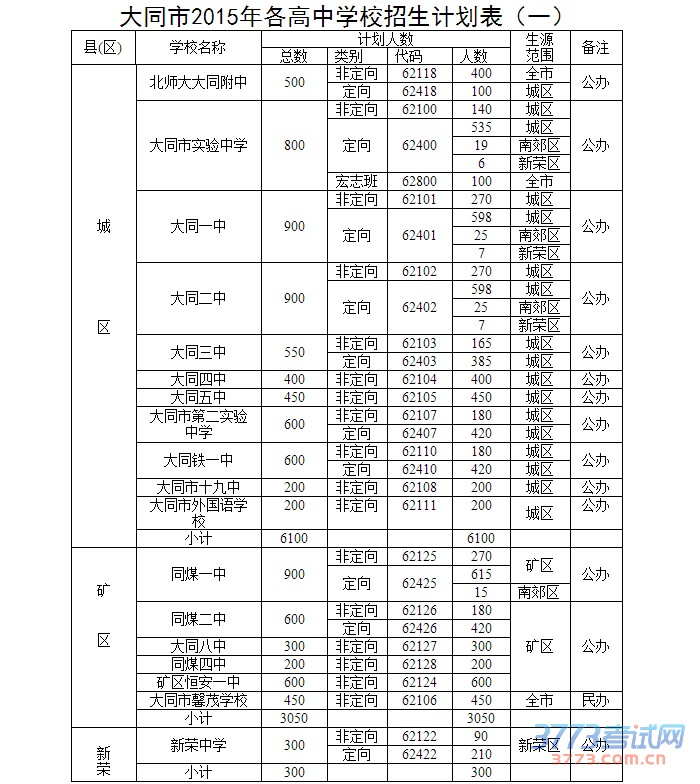 [组图]大同市2015年高中学校招生计划