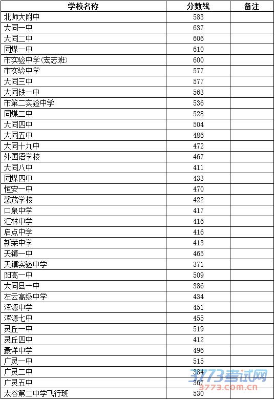 2015年山西大同中考分数线公布 2015大同中考分数线 大同高中录取分数线