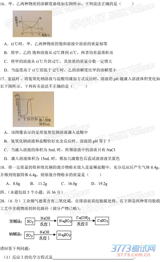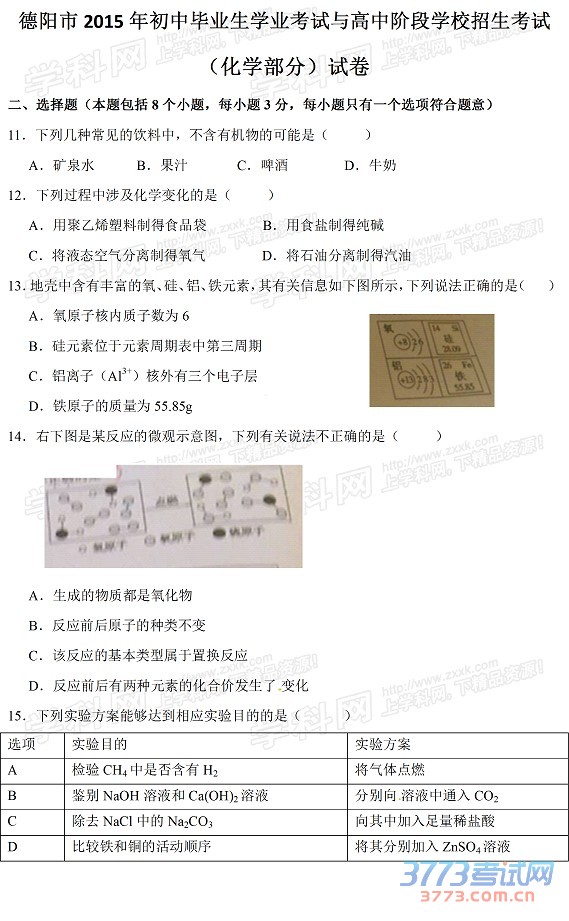 及时公布广安中考试题、答案和中考作文。祝各位考生都能取得好的成绩。2015年四川省德阳市中考化学试题: