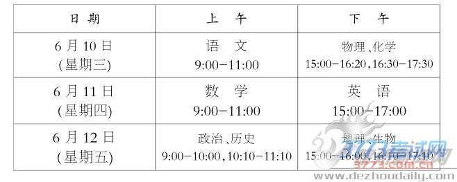 考试科目:语文(含传统文化)、数学、外语、物理、化学、生物、思想品德(含安全常识)、历史、地理、体育与健康、信息技术、理化生实验操作技能等作为考试科目。体育考试和实验技能测试时间为5月11日至29日。综合素质评价作为考查科目,评价结果用A、B、C、D的形式表达,分别以5、4、3、2分计入中考成绩;评价结果为D的考生,不具备省级规范化重点高中或县市优质高中录取资格。 2016年起,音乐、美术、社会实践等将作为考查科目计入中考。
