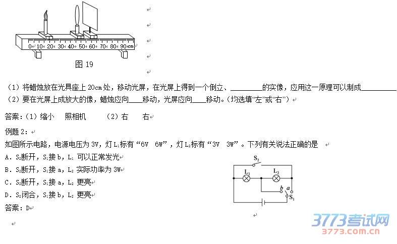 探究凸透镜成像规律的实验中,小明将焦距为10cm的凸透镜固定在光具座上50cm刻线处不动,如图19所示。调节烛焰、凸透镜和光屏的中心在同一高度。