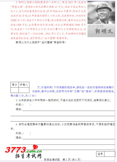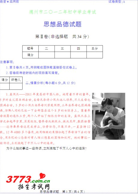 [组图]2012年德州中考历史思想品德试题及答案标准