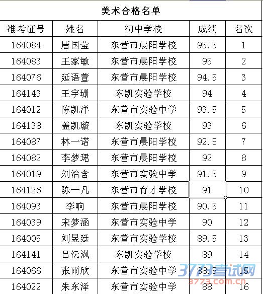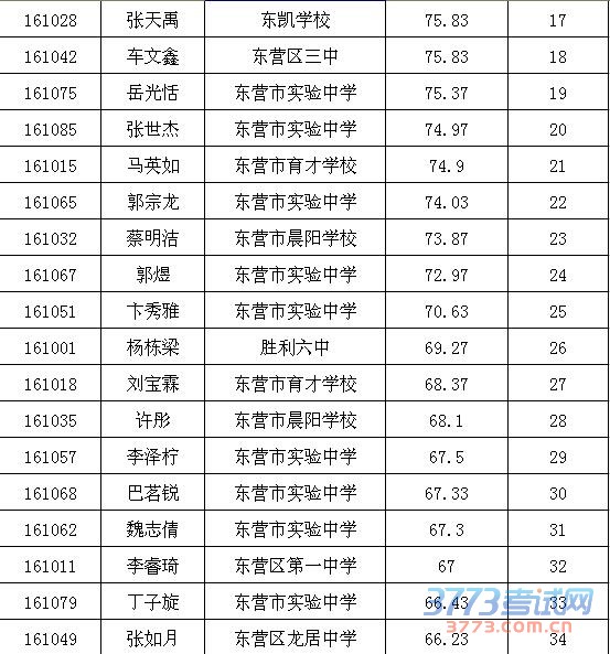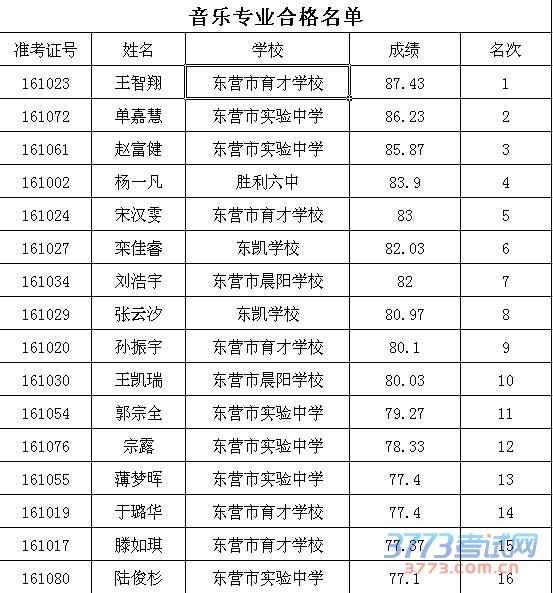 [组图]东营市二中2016年自主招生及音体美特长生合格名单