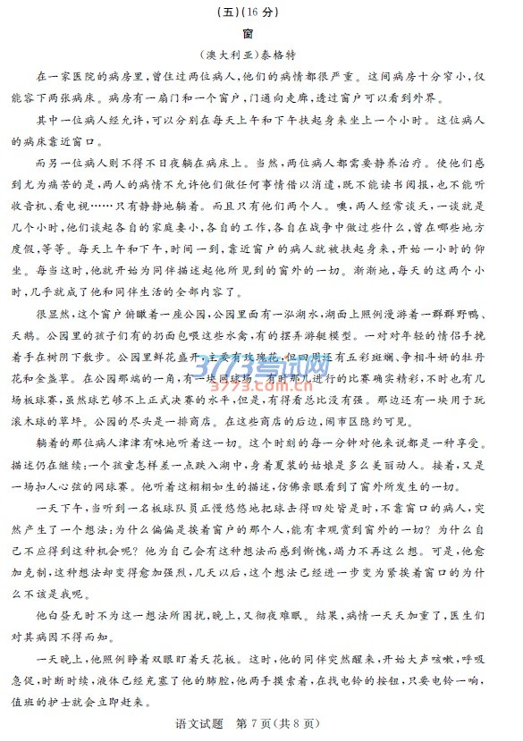 [组图]2016东营中考语文试题及答案评分标准