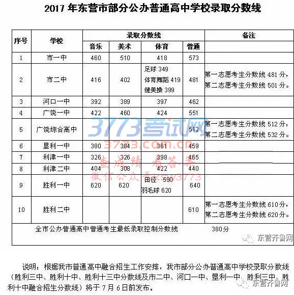 东营部分高中录取分数线公布:最低录取分数线为380分