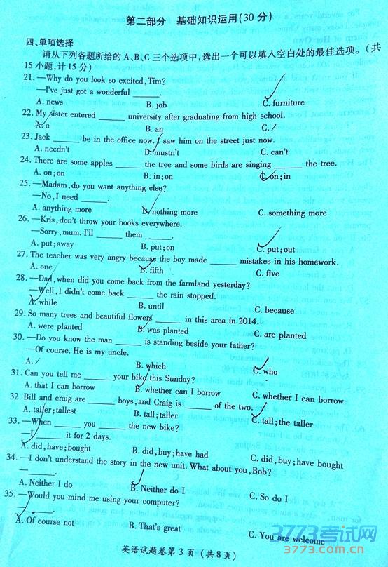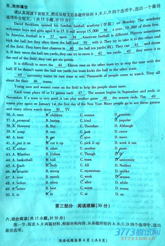 [组图]2015恩施中考英语试题及答案发布