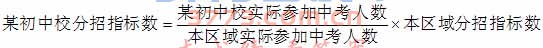 (3)各初中校分招指标数按毕业年级的班数和总人数综合计算,标准班额为50人,平均班额超过50人的按50人计算,不足50人的按实际人数计算,具体数据以学籍数和中考报名数为依据。