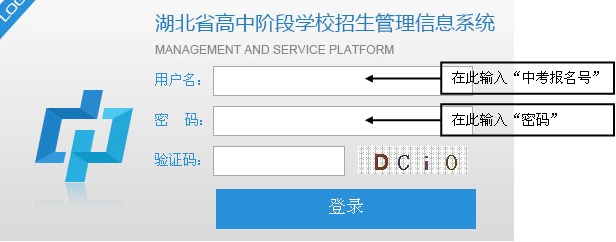 1、考生登录湖北省高中阶段学校招生管理信息系统(http://gzjd.hubzs.com.cn)(最好用IE浏览器),出现下图界面: