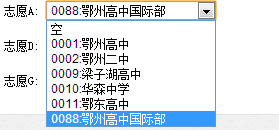 单击A右下拉菜单,选择所需填报的学校单击即可,以此类推