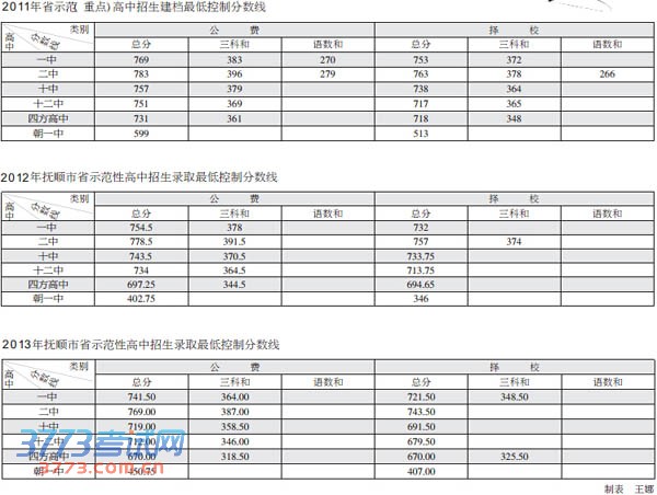 [图文]2011-2013年抚顺中考示范性高中录取分数线