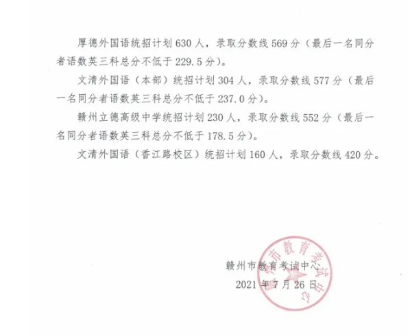 相关文章 2021/7/27·2021赣州十六中赣州六中录取分数线公布2021/7/27·2021赣州十四中赣州市阳明中学录取分数线公2021/7/27·2021赣州城区第二批高中录取分数线公布2021/7/27·2021赣州六中赣州十五中录取分数线划定2021/7/27·2021赣州十六中录取分数线划定2021/7/27·2021赣州市阳明中学录取分数线划定2021/7/27·2021赣州十四中录取分数线划定2021/7/27·2021赣州中考市区第二批高中录取分数线划定2021/7/27·2021大余中学新城中学梅关中学录取分数线2021/7/27·2021赣州中考兴国县高中录取分数线公布 推荐专题 天津 上海 北京 英语四六级查分 浙江音乐学院 云南艺术学院 甘肃省教育考试院 吉林省教育考试院 湖北省教育考试院 河南招生考试信息网 黑龙江省招生考试院 初二会考 中考志愿填报 异地中考 河南高考志愿 重庆高考志愿 西藏高考志愿 贵州高考志愿 云南高考志愿 四川高考志愿 海南高考志愿 广西高考志愿 广东高考志愿 江西高考志愿 武汉大学 四川大学 电子科技大学 西南交通大学 山东 辽宁 吉林 重庆 湖南高考志愿 湖北高考志愿 福建高考志愿 广西艺术学院 新疆艺术学院 浙江高考志愿 上海高考志愿 江苏高考志愿 安徽高考志愿 山东高考志愿 陕西高考志愿 中考分数线 中考录取查询 中考查分网 中考作文网 中考试题答案网 山西高考志愿 宁夏高考志愿 青海高考志愿 甘肃高考志愿 新疆高考志愿 河北高考志愿 天津高考志愿 北京高考志愿 内蒙古高考志愿 吉林高考志愿 辽宁高考志愿 黑龙江高考志愿 福建高职招考 湖南大学 中南大学 山西 综合评价录取 高考专项计划 陕西 河北 河南 华南理工大学 中山大学 西安美术学院 西安音乐学院 湖北 厦门大学 湖南 重庆大学美视电影学院 海南 四川美术学院 浙江大学更多专题 移动站 电脑版 专题 删文联系: 3773考网 闽ICP备08106227号-4 合作QQ: