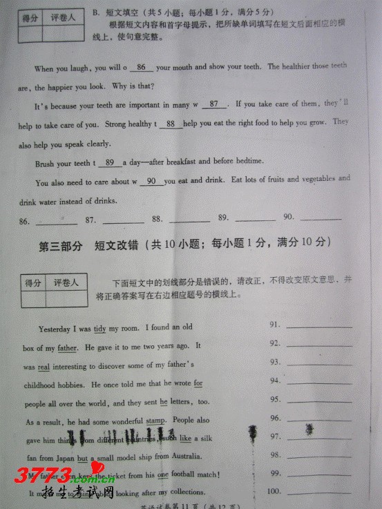 [组图]2012年广安中考英语试卷及答案