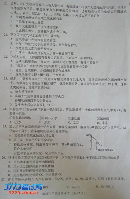[组图]2013广安中考物理化学试题答案发布