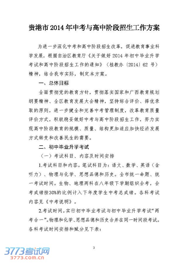 [组图]贵港市教育局2014年中考与高中招生工作方案