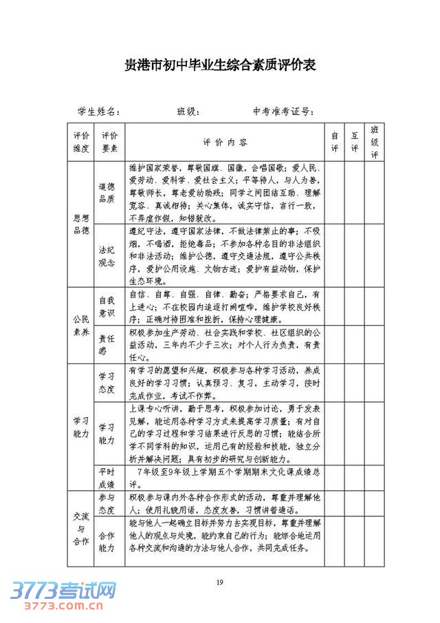 3773考试网2016中考贵港中考正文