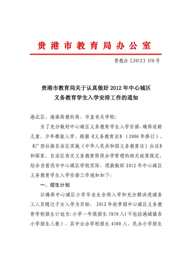 [组图]贵港市教育局关于认真做好2012年中心城区义务教育学校学生入学安排工作的通知