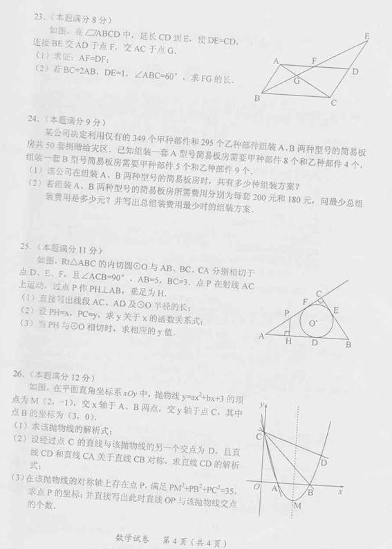 [组图]2012年广西贵港市中考数学试题答案