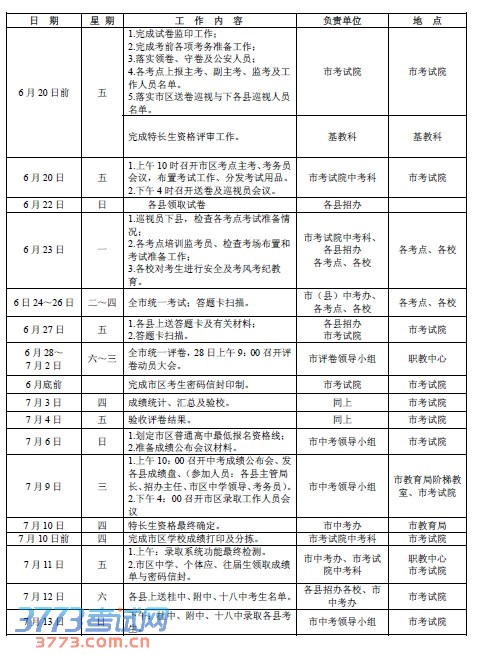 [组图]2014桂林中考高中招生工作时间日程安排表