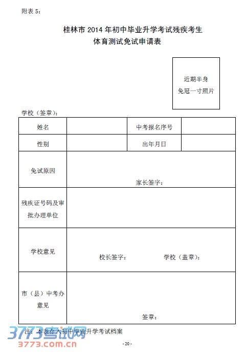 [图文]2014桂林中考体育考试残疾考试免试申请表