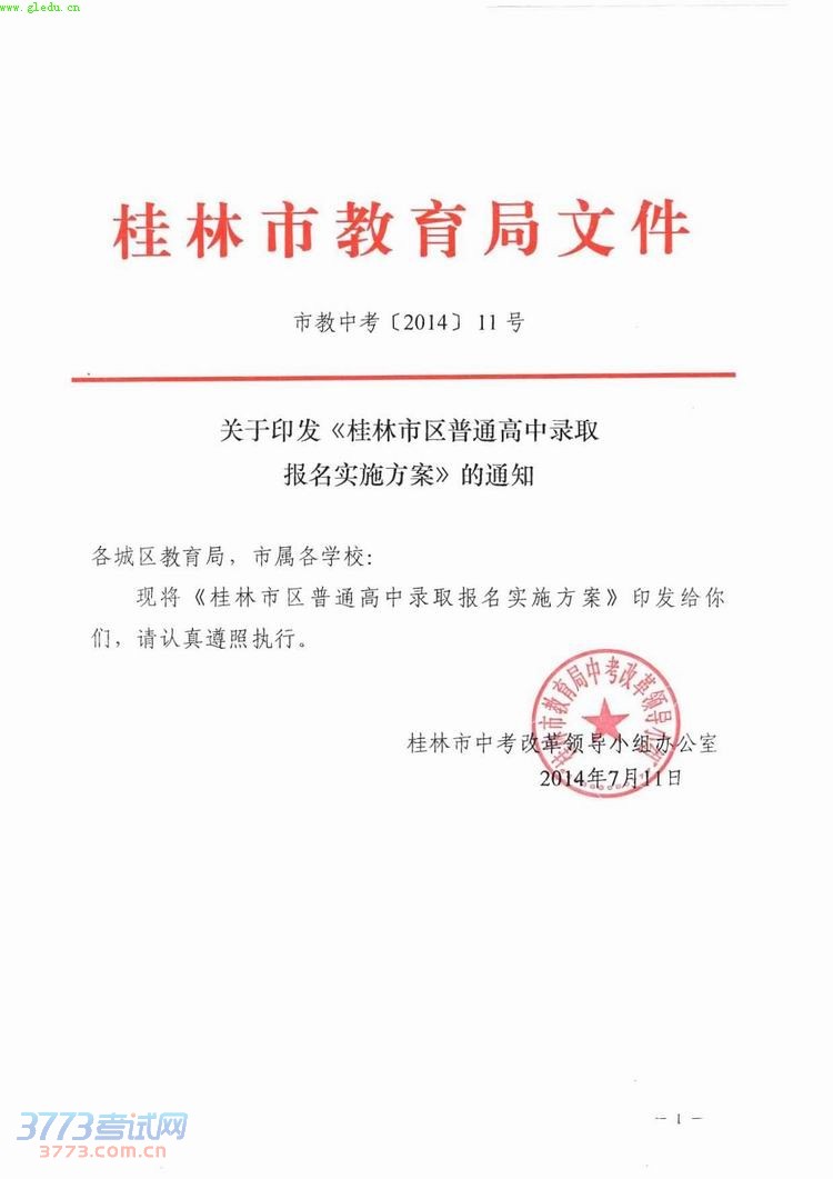 关于印发《桂林市区普通高中录取报名实施方案》的通知