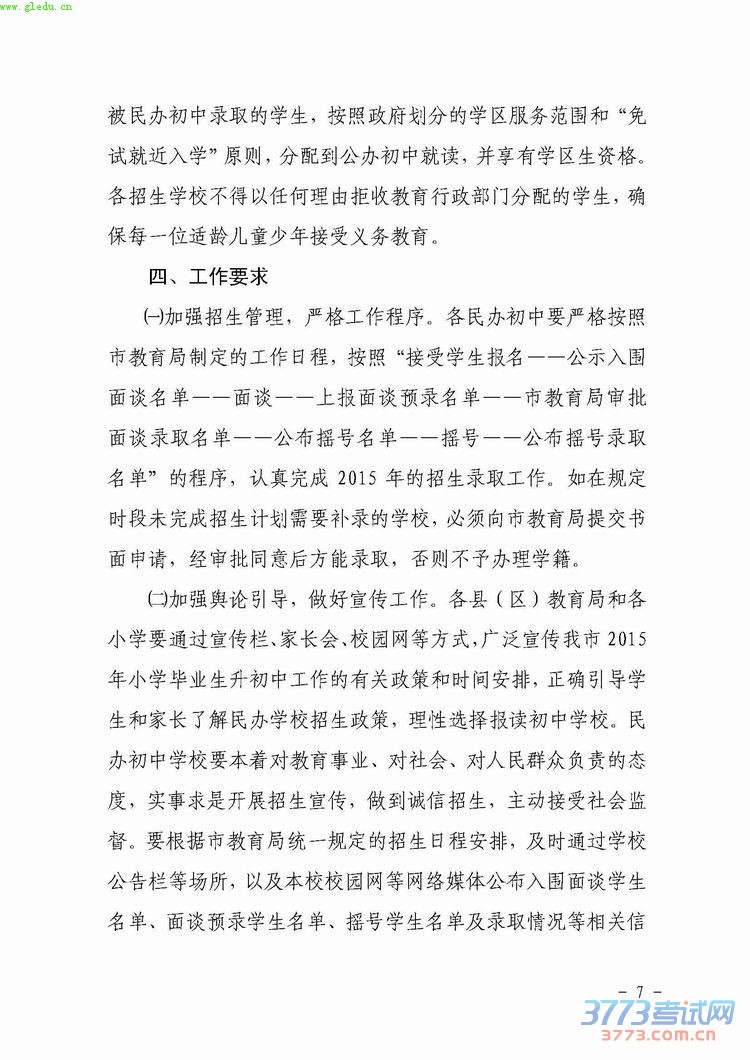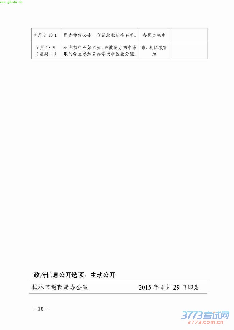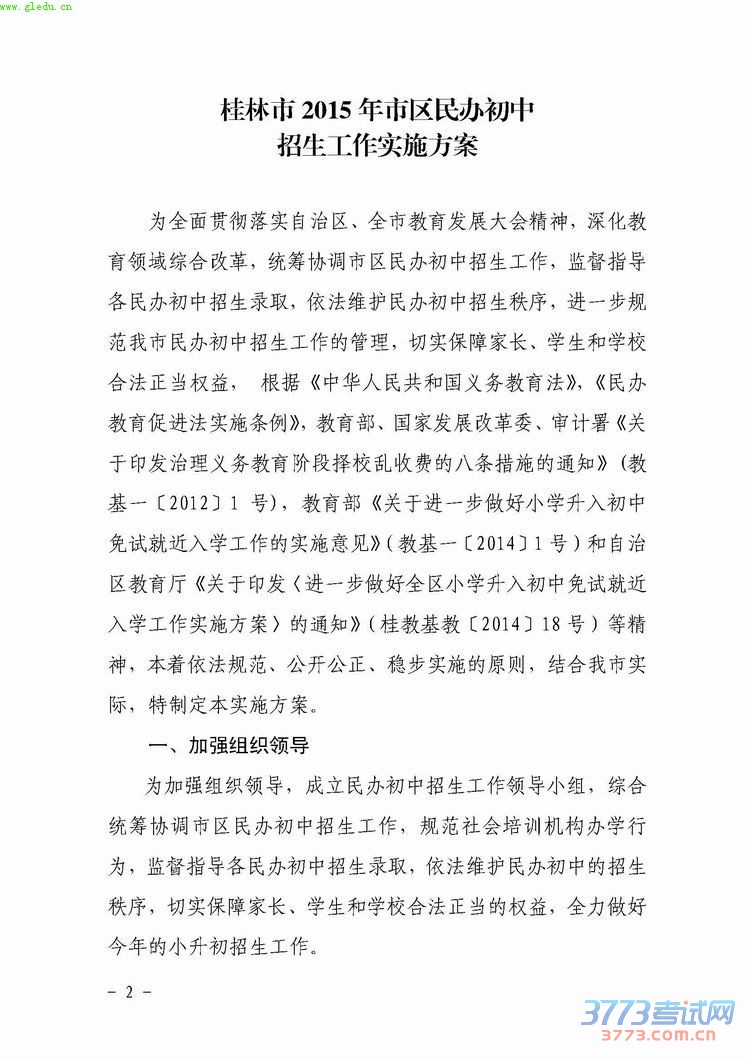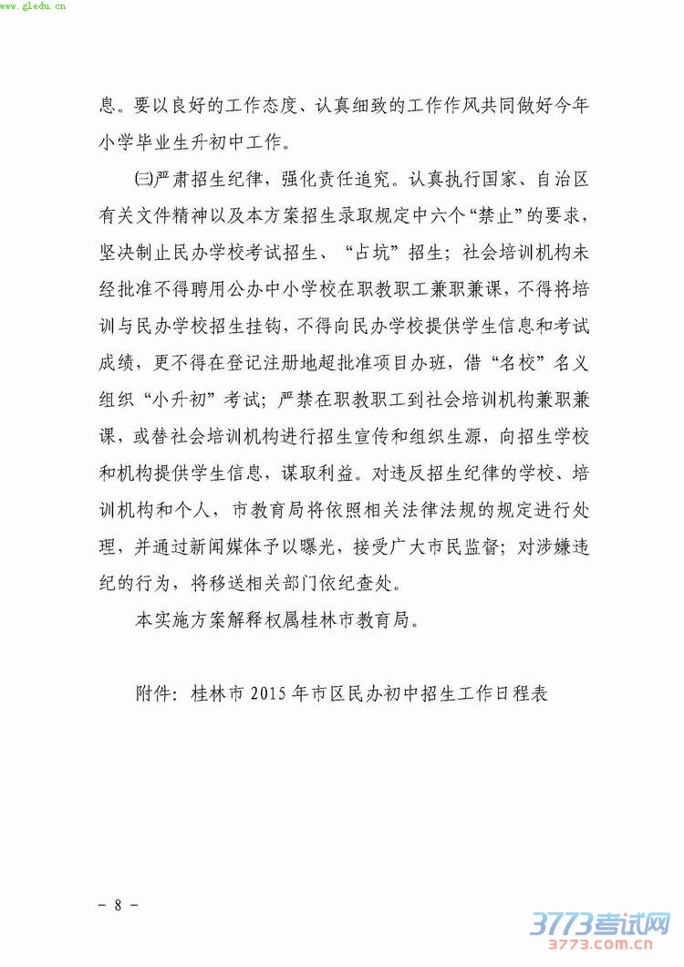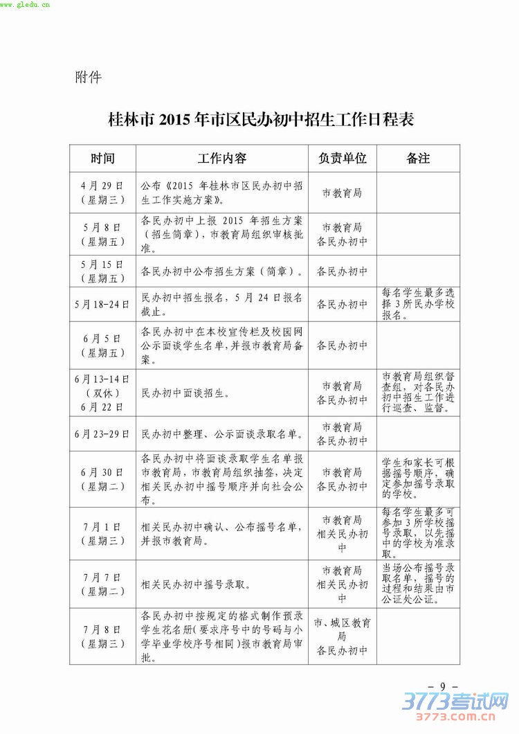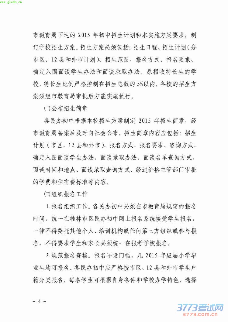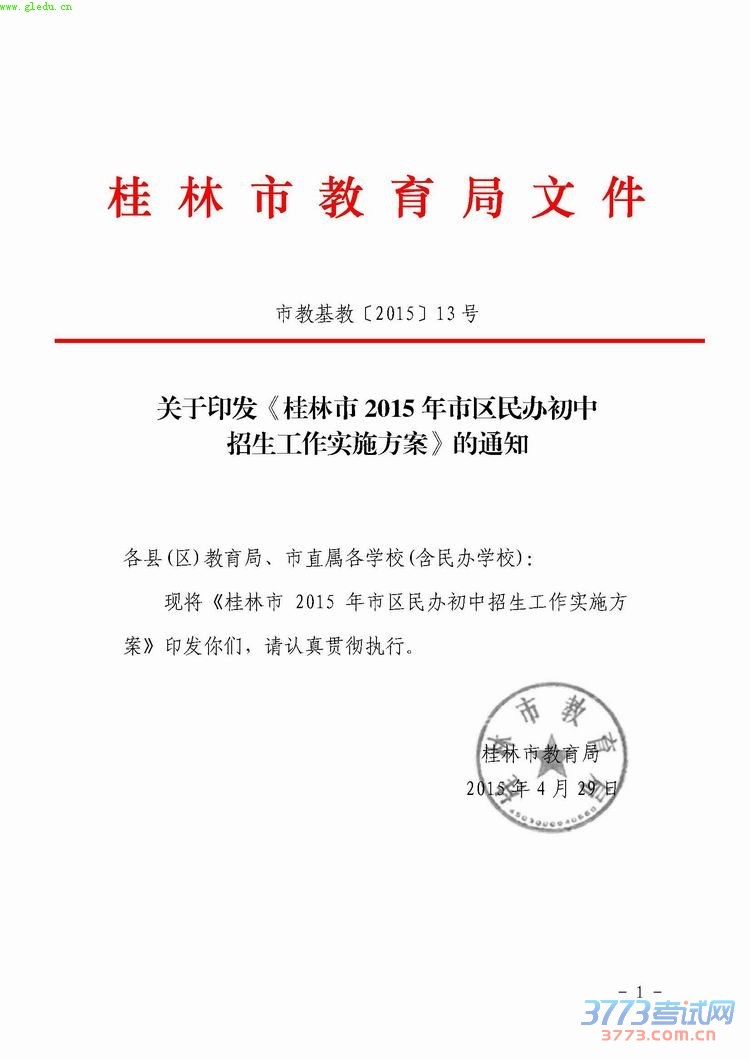 关于印发《桂林市2015年市区民办初中招生工作实施方案》的通知