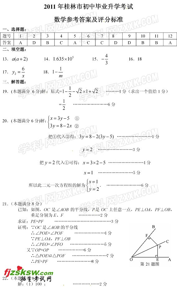 [组图]广西桂林2011中考数学试题及答案