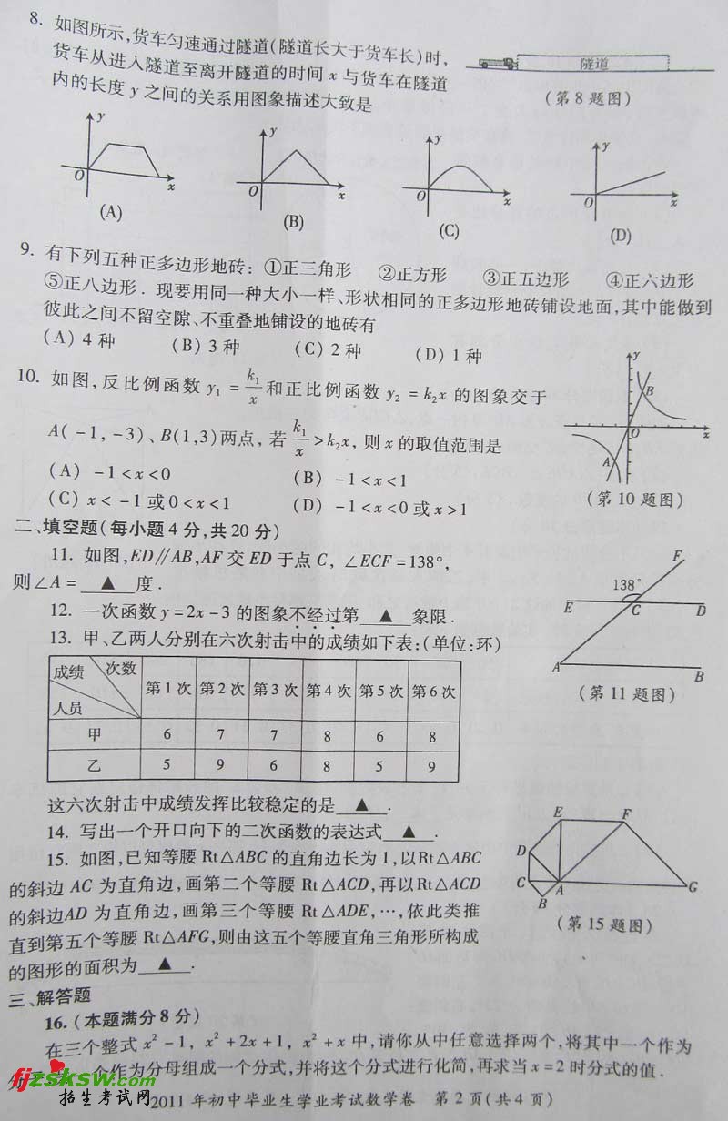 [组图]贵州贵阳2011中考数学试题及答案