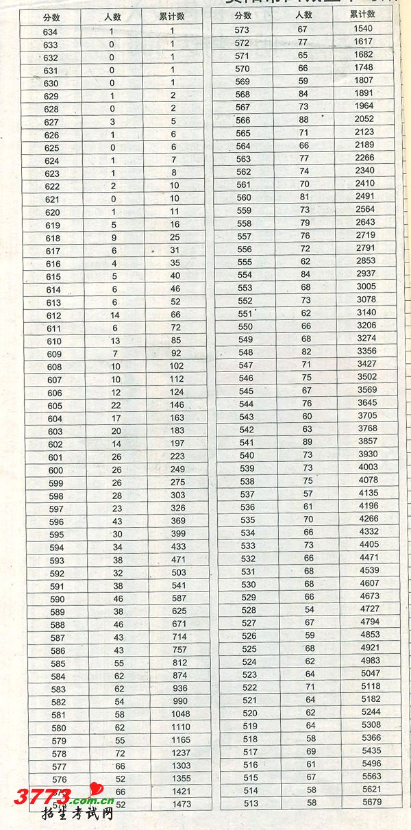 从分数段表可以看出,今年四城区考生中排名第一的分数为634分,只比总分少了16分。620分及以上的考生仅有16人,610分及以上的85人,600分及以上的249人。由此可见,600分以上的考分主要集中在600分到610分之间。