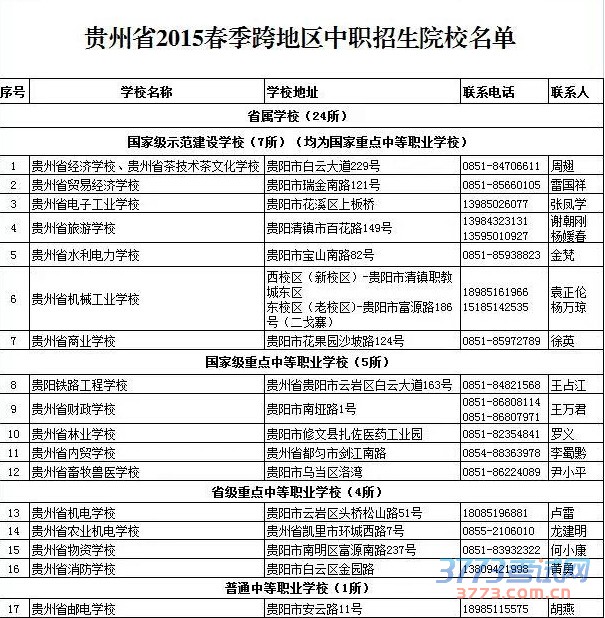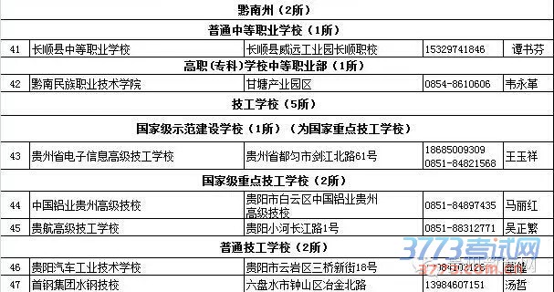 三、经贵州省人力资源和社会保障厅批准技工类学校5所,其中国家级重点技工学校3所(其中1所同时为国家级示范建设技工学校)。