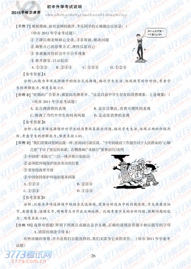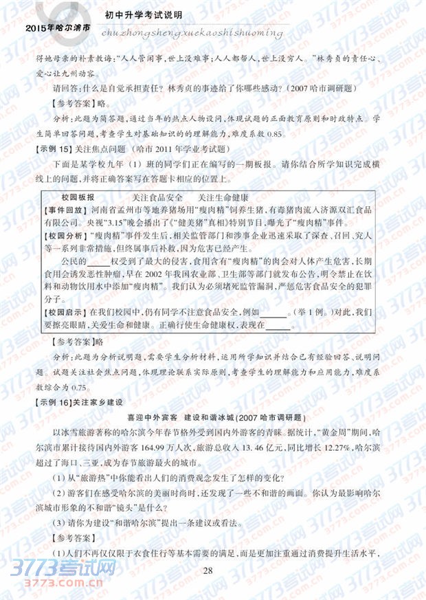 [组图]2015哈尔滨中考思想品德考试说明大纲