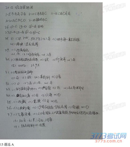 [组图]2015哈尔滨中考会考地理试题及答案公布