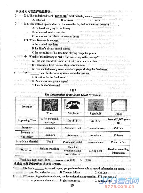 [组图]2015哈尔滨中考英语试题及答案评分标准