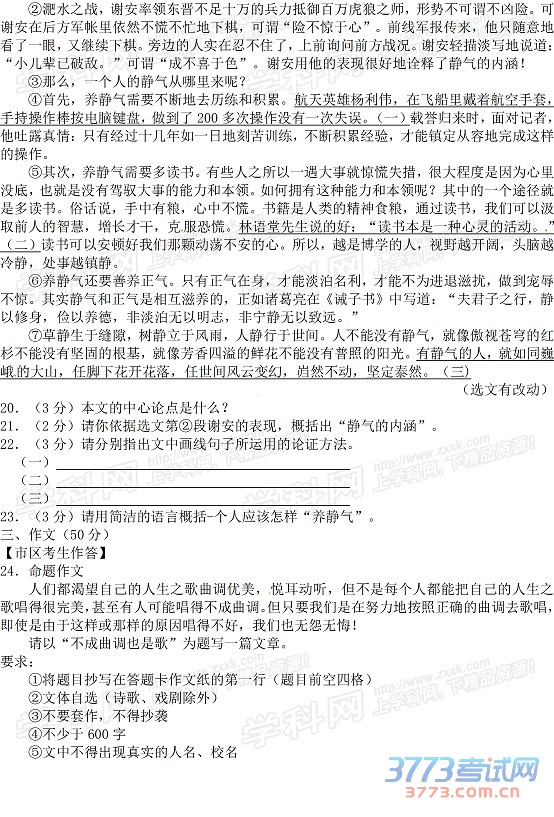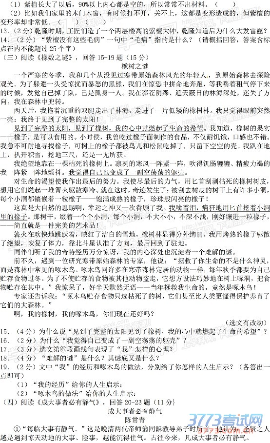 [组图]2015哈尔滨中考语文试题及答案评分标准