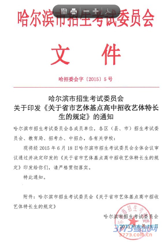 哈尔滨市招生考试委员会关于印发《关于省市艺体基点高中招收艺体特长生的规定》的通知