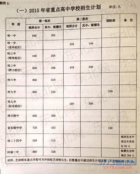 东北网7月9日讯(记者 栾微)今天下午,哈市招考办发布了哈市2015年中等学校招生工作规定。今年全市8所省重点高中总计招生7560人,比去年增加390人。今年首次取消艺体生和择校生,省市重点高中均校取消了择校生,将名额分配到统招和配额中,按照九个批次报考,国际班首次加入填报志愿批次中。