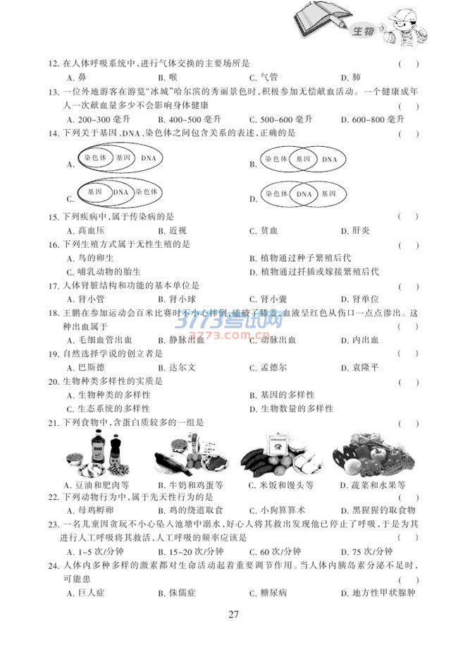 [组图]2017哈尔滨中考生物大纲考试说明