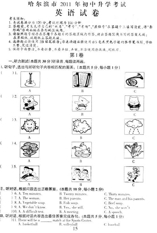 [组图]哈尔滨2011中考英语试题及答案
