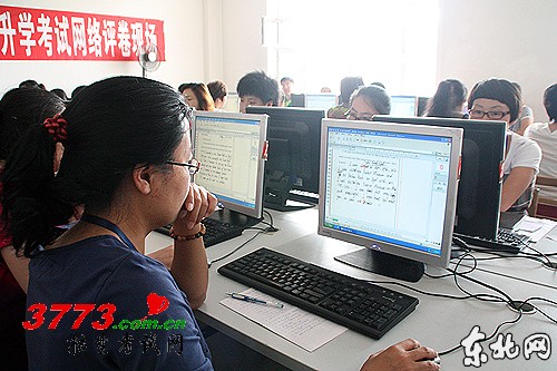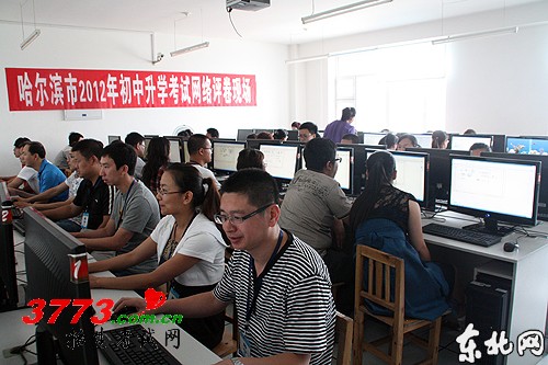 哈尔滨2012中考网络评卷现场。东北网记者 王蕊 摄