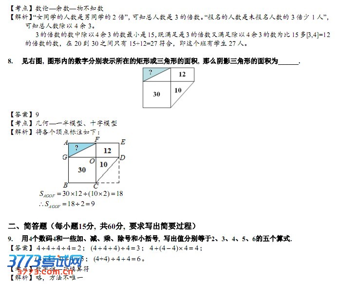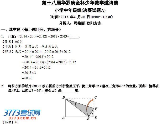 相关文章 2016第二十一届华杯赛决赛考试试题分析2016华杯赛初赛晋级名单公布2013第十八届华杯赛决赛B卷答案(小中年级组)2013第十八届华杯赛决赛B卷答案(小高年级组)2013第十八届华杯赛决赛A卷答案(小高年级组)2013第十八届华杯赛试题题目简单2013华杯赛考试成都8000名小学生参加2013成都华杯赛开考考点家长多2013第十八届华杯赛小学中年级组初赛试题(A卷)第十八届华杯赛小学高年级组初赛试题(A卷) 触屏版 电脑版 3773考试网 琼ICP备12003406号-1