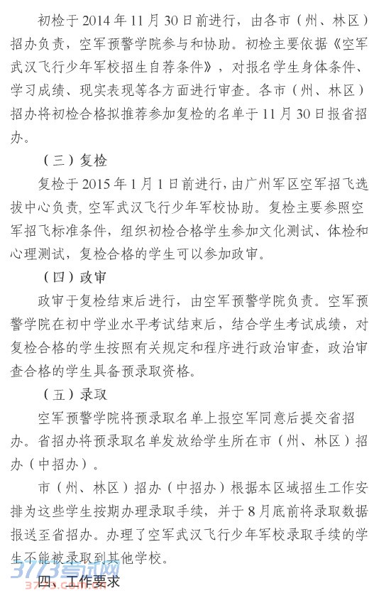 省招办关于做好2015年空军武汉飞行少年军校招生工作的通知
