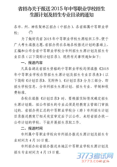 [组图]2015湖北中职学校招生计划及招生专业目录报送通知